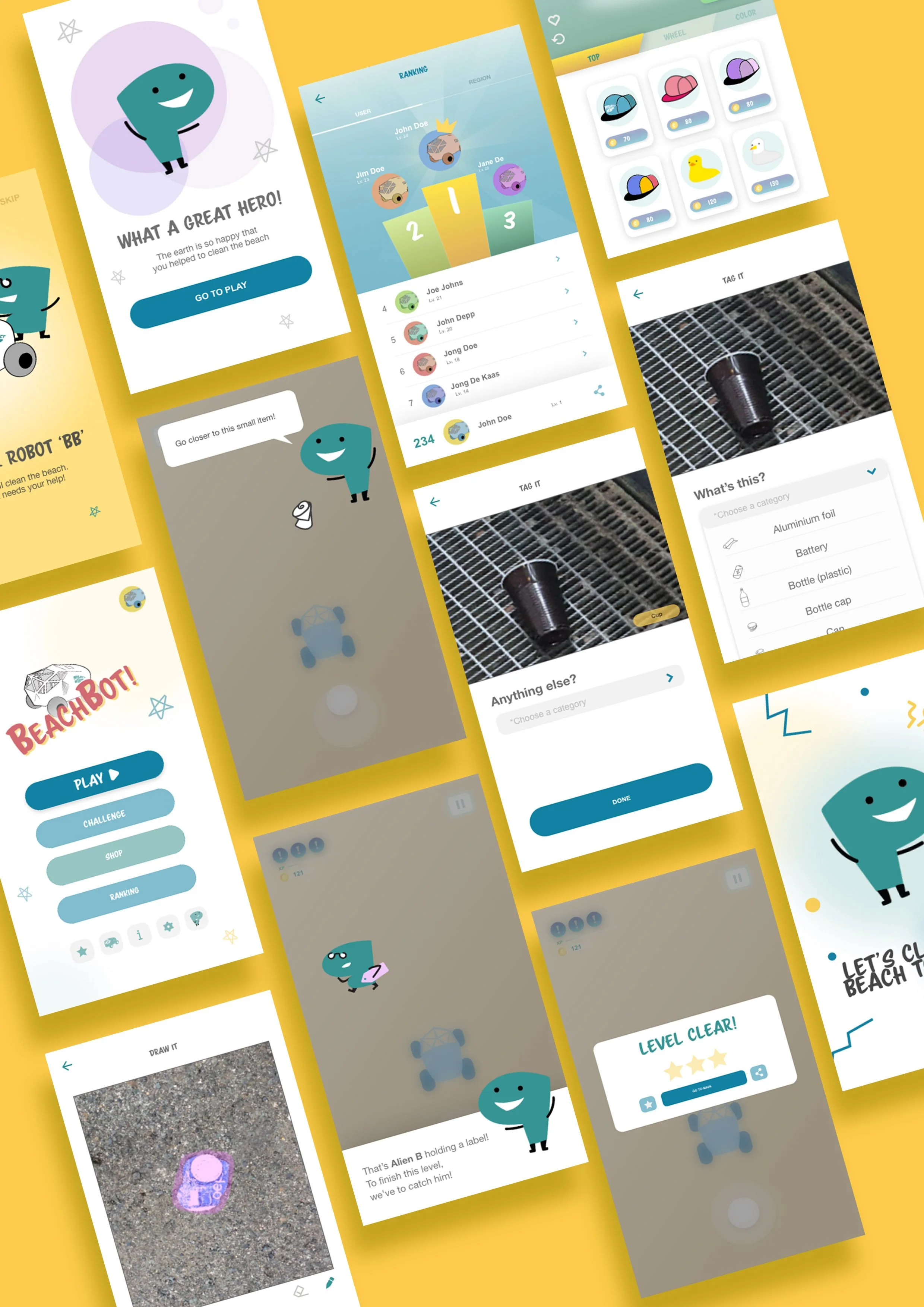 In collaboration with tech and environmental partners, I led the UX and visual design for a mobile platform that engages young users in annotating beach litter. The platform supports two autonomous robots—BB (litter picker) and MAPP (object recognizer)—by crowdsourcing annotated data through a gamified mobile app. The project evolved over three years with 2 design sprints from conceptual ideation to MVP deployment.