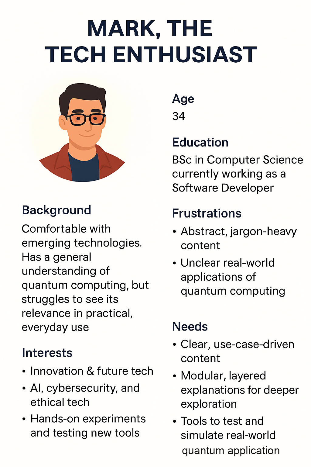 Many target users, especially students, associate quantum computing with complexity, inaccessibility, and irrelevance to their daily lives. The “fear of the unknown” and a lack of visible practical applications limit motivation to engage with the topic.